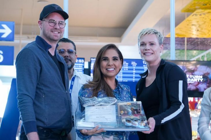 La estadounidense, quien estuvo 12 días en el destino, recibió un reconocimiento de parte de las autoridades aeroportuarias, así como regalos de tiendas ubicadas en la terminal aérea y de American Airlines, la aerolínea con la que voló a Cancún.