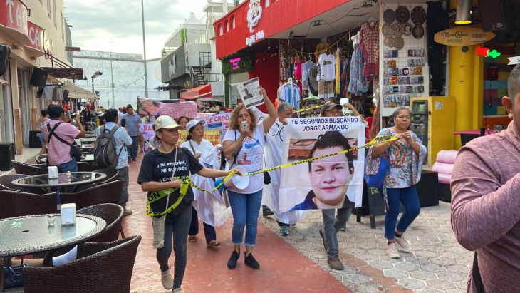 Una vez más, madres buscadoras, acompañadas por integrantes de colectivos feministas, se manifestaron en la zona hotelera de Cancún, Quintana Roo, y aunque sólo fue por algunos minutos, bloquearon ambos carriles para después iniciar una marcha a lo largo del bulevar Kukulcán, desde el kilómetro 9 hasta el 6.
