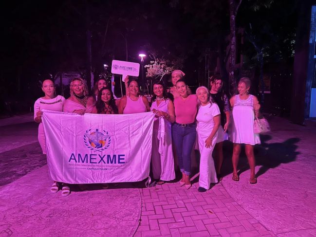 La Asociación Mexicana de Mujeres Empresarias (Amexme) encabezó el encendido de luces rosas en el complejo Aldea Zamá, con motivo del Día Internacional de la Lucha contra el Cáncer de Mama, el pasado 19 de octubre.