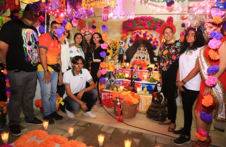 La celebración del Día de Muertos y el Janal Pixan en Playa del Carmen abarcó un colorido recorrido por los altares de muertos sobre la calle Primera Sur y la Quinta Avenida, encabezado por la presidente municipal Lili Campos, quien entregó reconocimientos a los participantes de la Asociación de Artesanos y Comerciantes. Además, inauguró las diversas actividades culturales en la renovada plaza cívica 28 de Julio, con la asistencia de más de 5 mil personas.