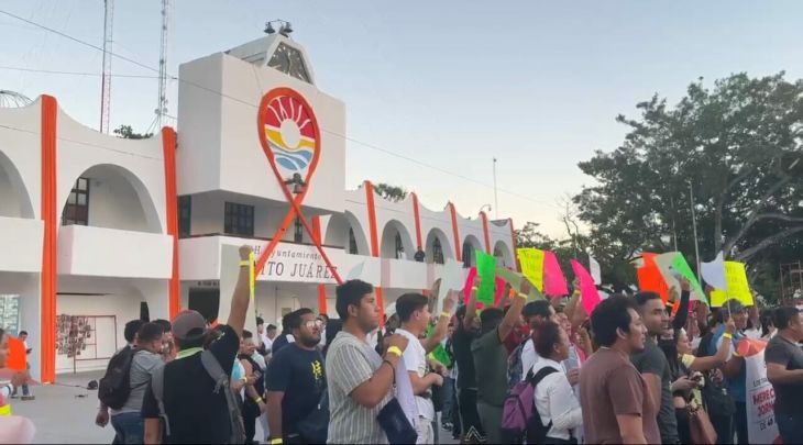 Trabajadores sindicalizados de la Confederación Revolucionaria de Obreros y Campesinos (CROC) Cancún realizaron una marcha pacífica este martes, como medida de presión para que se apruebe la reducción de la jornada laboral a 40 horas.