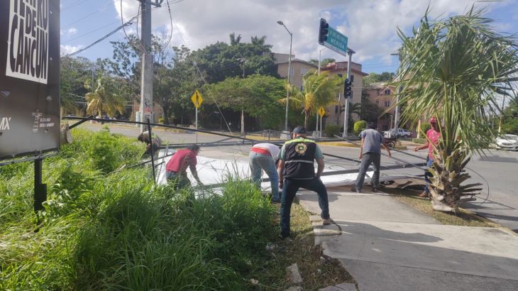 De igual manera, se registró un incendio por las líneas de alta tensión en la subestación de CFE ubicada en la avenida Bonampak, además se realizó el retiro de las vallas que se encontraban en el paso a desnivel ubicado en la avenida Kabah y el bulevar Colosio ya que eran movidas por las ráfagas de viento ocasionando interrupciones a la circulación sobre dicha vialidad.