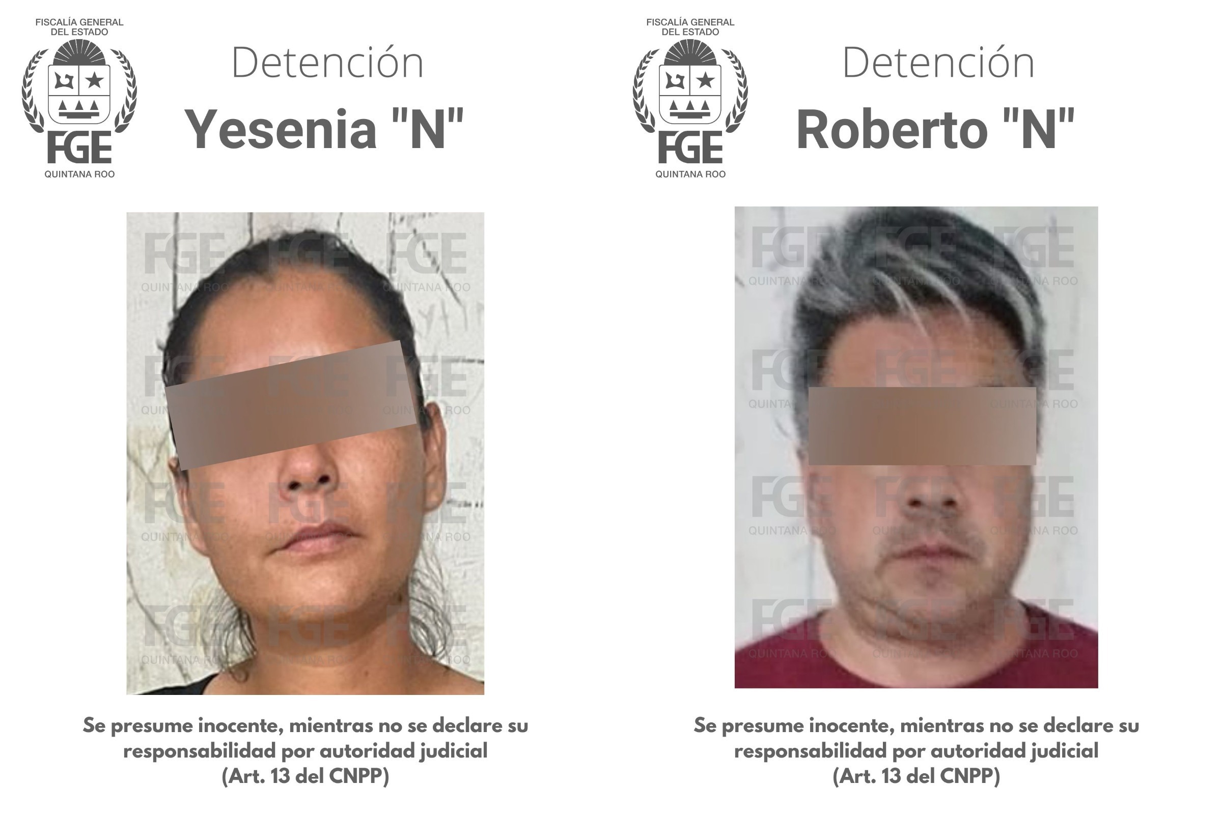 Se trata de Yesenia N. y Roberto N., quienes fueron detenidos en la avenida Copán de la supermanzana 15 de Cancún, relacionados por su probable participación en hechos que podrían ser constitutivos de delitos contra la salud en su modalidad de narcomenudeo.
