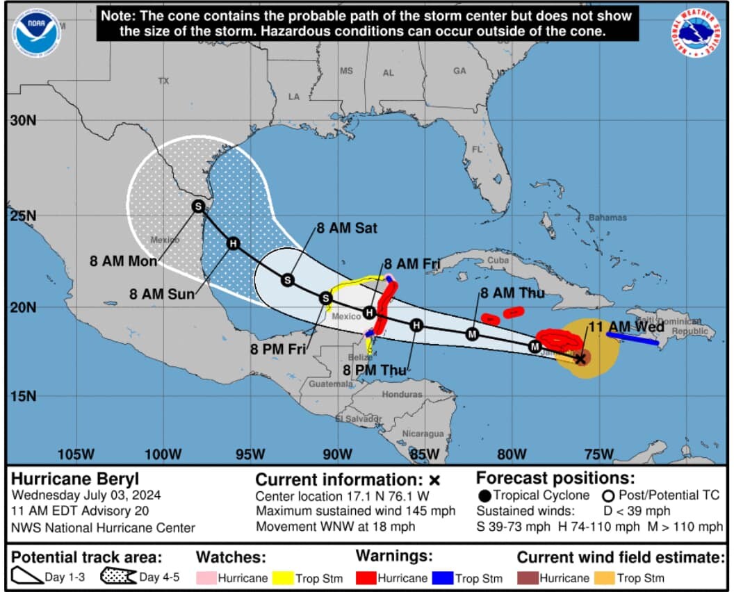 Sigue la trayectoria en vivo de Beryl