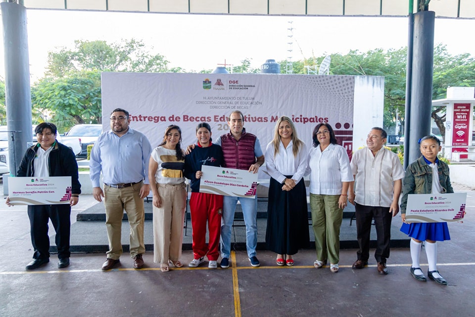 El presidente municipal de Tulum, Diego Castañón Trejo, entregó 605 becas educativas a un igual número de estudiantes del nivel básico, medio superior y superior. Lo anterior con una inversión de un millón 240 mil pesos.