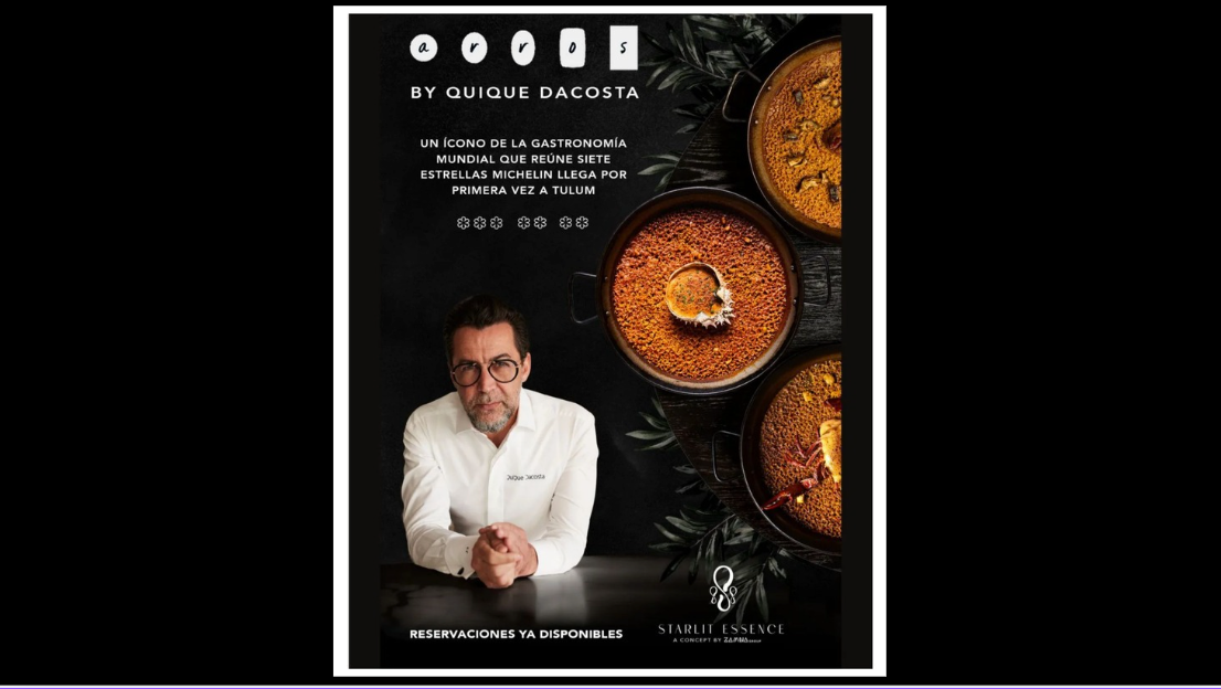 Tulum se convierte este enero en el epicentro de la alta gastronomía mundial con la inauguración del proyecto Starlit Essence, de Grupo Zamná, que ofrecerá a los comensales una experiencia efímera y única que cautivará los sentidos. El encargado de inaugurar este exclusivo evento es el Quique Dacosta, un verdadero icono de la cocina española galardonado con siete estrellas Michelin. Él presenta una muestra de su restaurante Arros QD, uno de los más reconocidos en Europa. “Gracias Tulum por la acogida maravillosa de @arrosqd. Está siendo una experiencia para todos nosotros única. Para los que nos visitáis trabajamos fielmente a nuestra filosofía para que también sea una experiencia única en un lugar único. Gracias equipo. Gracias familia @zamna.music @zamna.group por la apuesta por la gastronomía. ¡Viva México!”, escribió el chef valenciano en su cuenta de Instagram. Arros QD ofrece un viaje sensorial que lleva la tradición culinaria española al siguiente nivel. Además, las técnicas vanguardistas del chef se fusionan con un toque tropical inspirado en los ingredientes frescos y locales de la región de la península de Yucatán, creando platos que rinden homenaje a la esencia del lugar. Los comensales podrán disfrutar de tres menús degustación que incluyen los platos más emblemáticos de Arros QD, que exhiben la maestría de Dacosta en el arte de cocinar el arroz, un alimento que eleva a su máxima expresión en este exclusivo espacio. Se promete que cada bocado sea una celebración de la cultura culinaria española y mediterránea, acompañada de una cuidada selección de vinos y mixología, especialmente pensados para maridar con la propuesta gastronómica de la velada. Starlit Essence se estableció en el restaurante Blue Venado Tulum, ubicado en la carretera costera Tulum-Boca Paila y estará disponible durante todo enero y hasta el 2 de febrero, brindando a los afortunados comensales la oportunidad de sumergirse en la propuesta del chef Dacosta en uno de los destinos más deseados del mundo. Se puede reservar en el link https://starlitessence.com/es/. Edición: Estefanía Cardeña