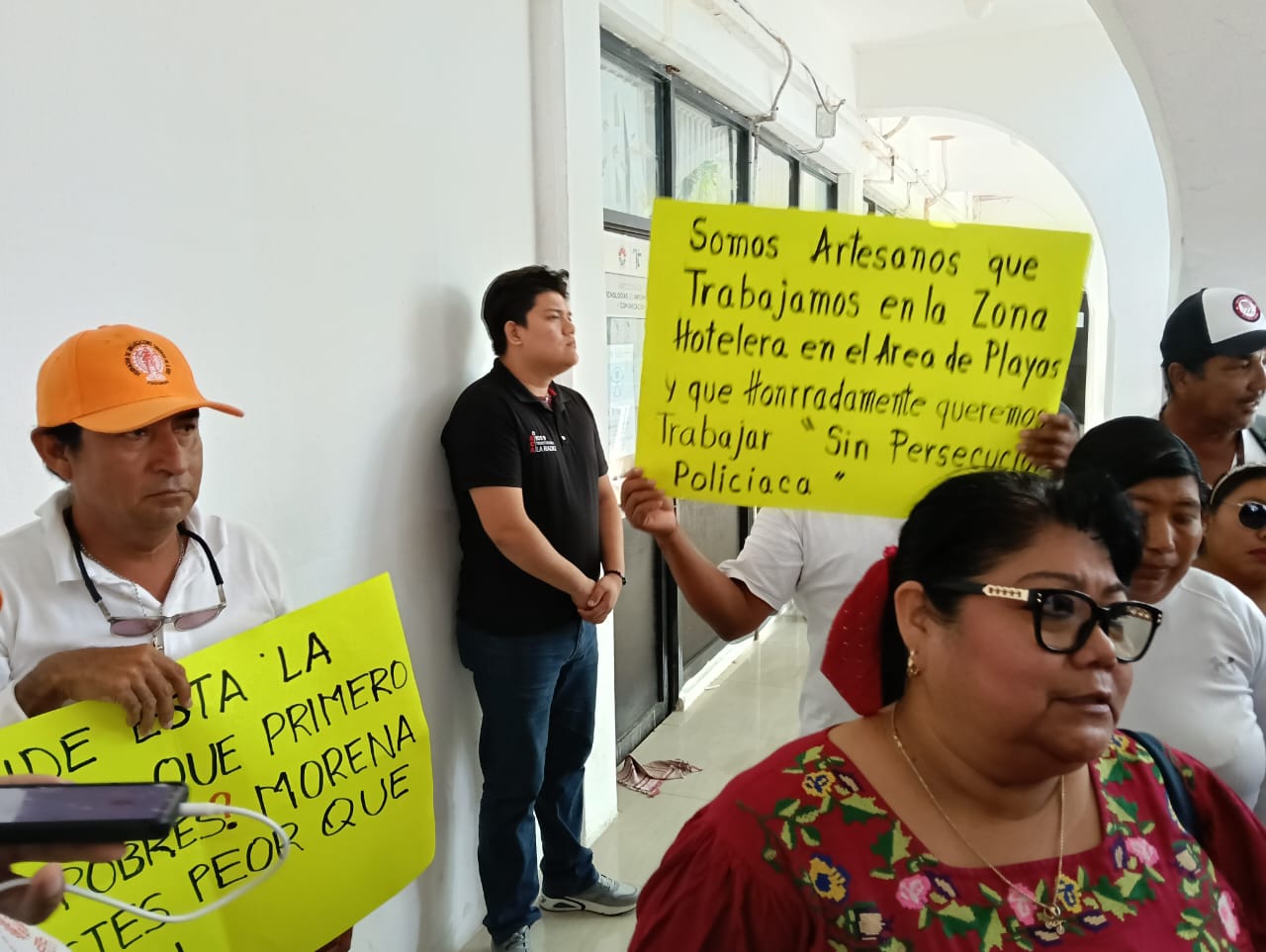 "Estamos representando a los compañeros artesanos y gastronómicos de zona hotelera, de la zona de playas, ellos llevan más de 30 a 40 años trabajando en zona de playas, con administraciones que han estado hemos tenido problemas, pero hemos llegado a acuerdos y se les ha permitido a los compañeros trabajar. Sin embargo, con esta administración que tenemos ya desde el mes de septiembre del 2024 hasta la fecha no se les está permitiendo trabajar y son perseguidos por la Guardia Nacional, por la policía turística, por la Marina, los encarcelan con arresto desde 12 hasta 36 horas sin derecho a que salgan", declaró Elvia Antonio Luciano, secretaría general de la Confederación de Trabajadores y Campesinos (CTC).