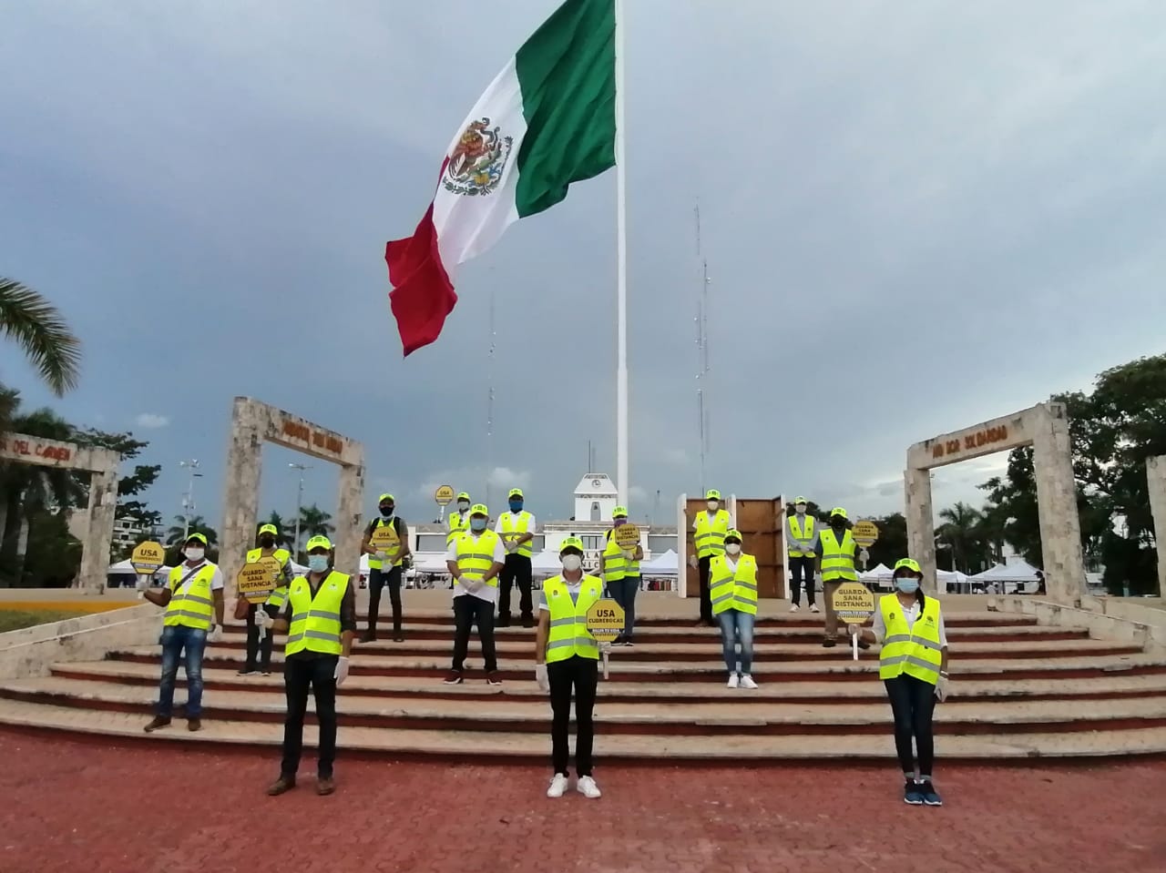 Allí una brigada de 20 voluntarios inició la labor de orientación a los ciudadanos para que sigan las medidas sanitarias que evitan la propagación del COVID-19. Se contó con el apoyo de cinco elementos del Instituto de Movilidad de Quintana Roo.