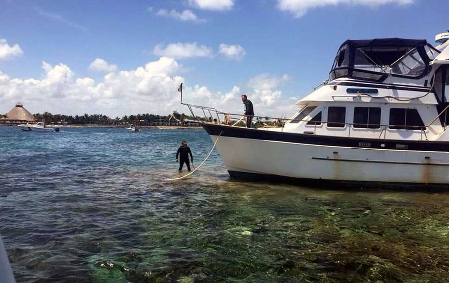 La embarcación Emily Elizabeth, de procedencia estadunidense, encalló sobre un arrecife coralino ubicado en el área de Punta Nizuc, dentro del Parque Nacional Costa Occidental de Isla Mujeres, en Cancún.