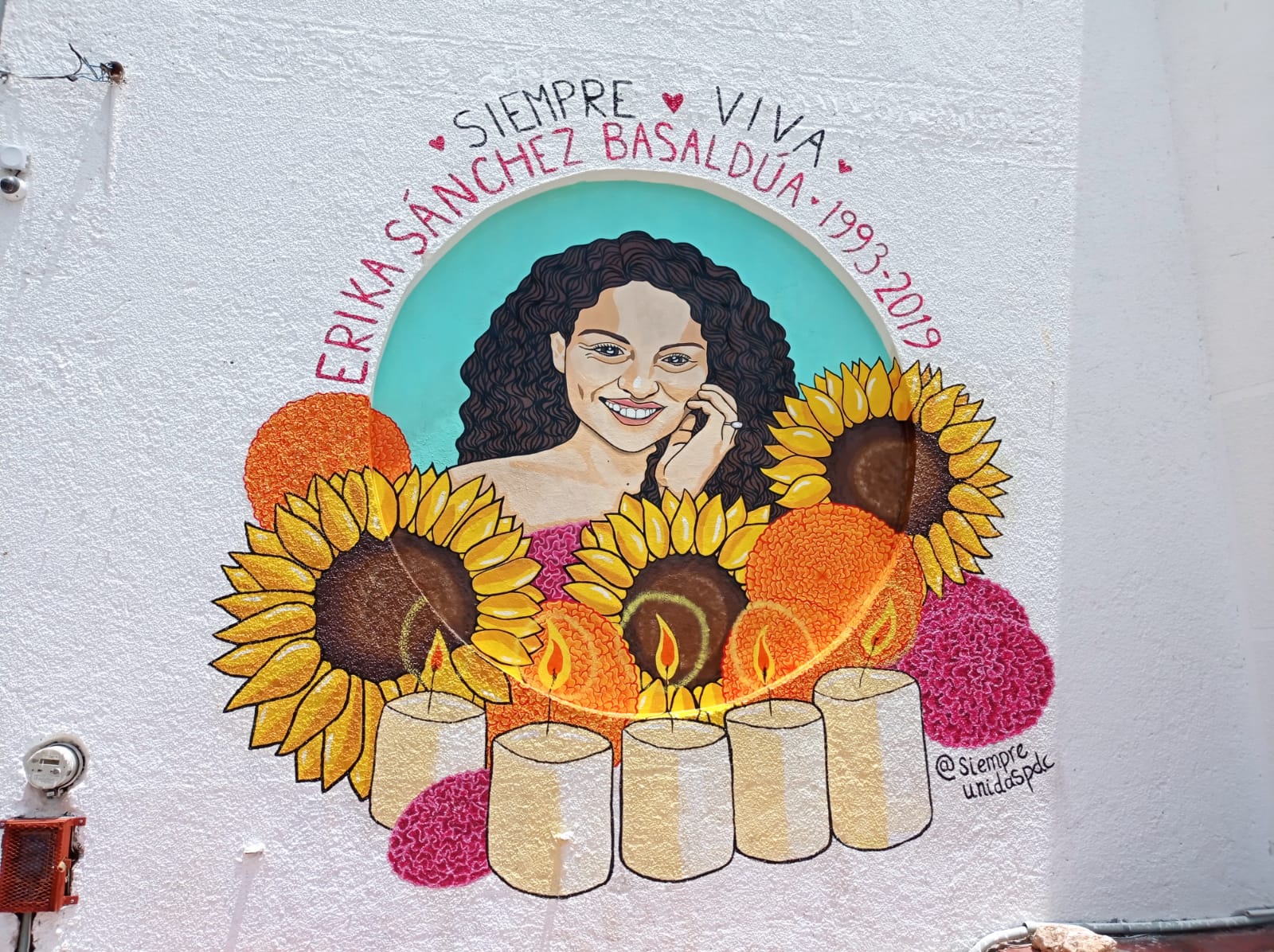 Tania Ramírez, de Siempre Unidas, habló del mural que está dedicado a Erika Sánchez Basaldúa, una joven mujer dedicada al ramo hotelero que fue asesinada en junio de 2019 en Playa del Carmen, cuyos familiares han sido acompañados por las integrantes de dicho colectivo.