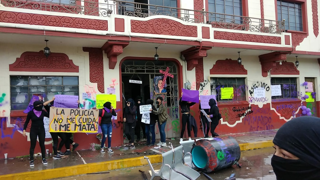 Tras realizar una marcha en repudio por la muerte de la doctora Beatriz Hernández en la galera de la Comandancia de la policía municipal el martes, integrantes de diversos colectivos feministas tomaron y quemaron el mobiliario del palacio municipal de Progreso de Obregón, la tarde de este viernes. El fuego de los muebles alcanzó la red eléctrica del inmueble lo que provocó que se produjera un incendio.