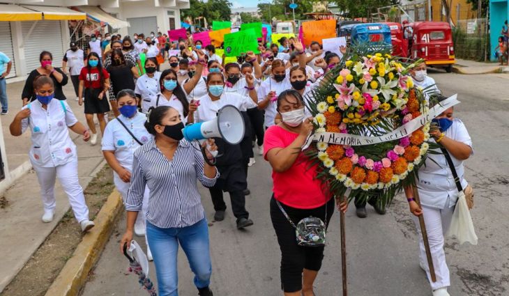 Maritza Gargallo subrayó que a la contingencia por Covid-19 se suma la pandemia de violencia contra las mujeres y niñas que continúa dejando cifras alarmantes en México. Debido a lo anterior, las mujeres sindicalistas alzaron la voz en una marcha pacífica que inició en el parque Lol Be, en el fraccionamiento Puerto Maya, y se trasladó hasta el acceso al cenote de esta delegación para colocar una ofrenda floral en memoria de Lucely.