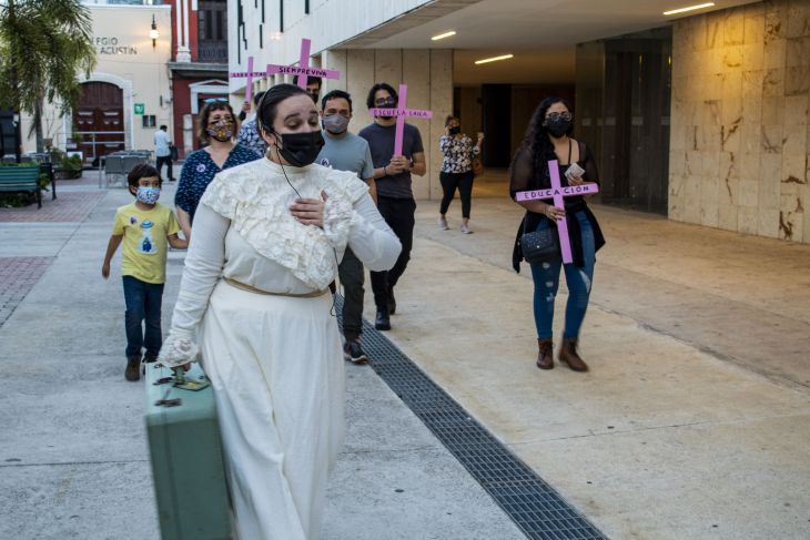 Antes de partir cada mujer con su comitiva por rumbo propio, juntas, cuestionan el monumento instaurado en el parque en honor a los llamados “Niños Héroes”, recordaron que, en ese mismo barrio estuvieron la revista Siempreviva, la Escuela de Niñas y el Instituto Literario dirigido por Rita Cetina Gutiérrez.
