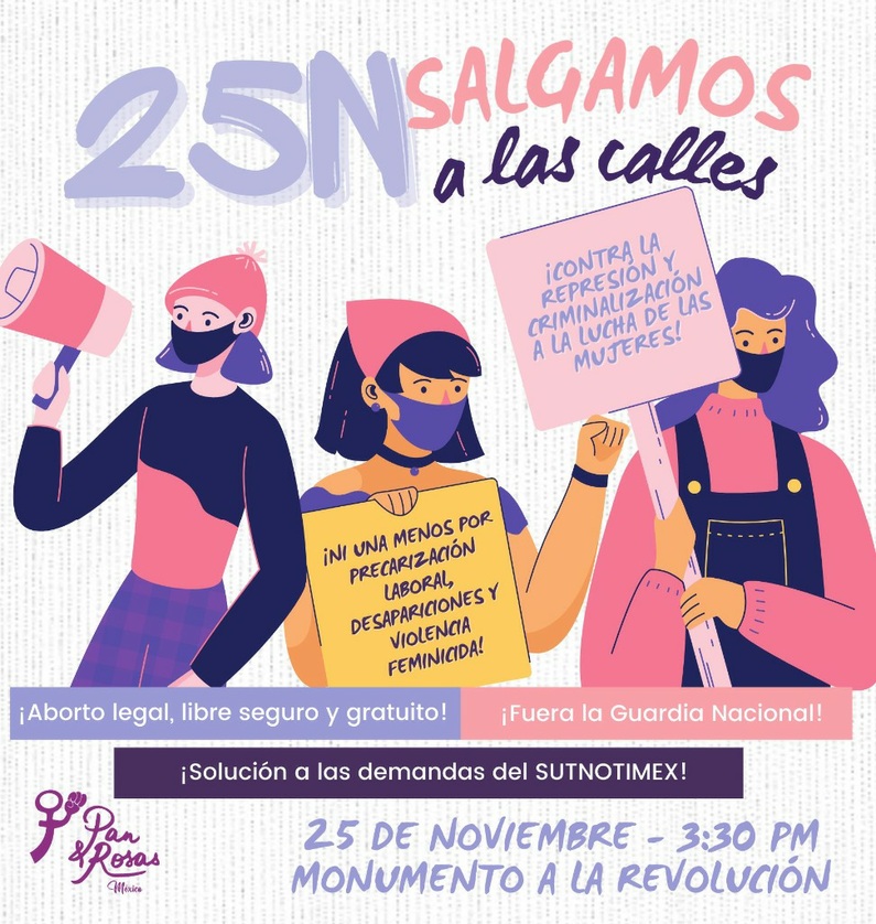 Las convocantes, entre ellas la Coordinación 8M, Terremoto Feminista, Pan y Rosas, Libres y Combativas, Red de Feministas Peninsulares y varias más, indicaron que “en esta jornada de lucha”, en la que también se esperan protestas en diferentes estados del país, “las mujeres manifestaremos nuestro hartazgo contra la impunidad, la violencia y la desigualdad”.