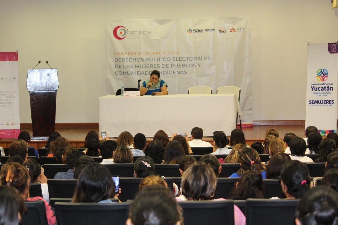 Con el fin de visibilizar la participación política de las mujeres de las comunidades del Estado de Yucatán, este viernes el Observatorio de Participación Política de las Mujeres en Yucatán, integrado por la Secretaría de las Mujeres, el Instituto Electoral y de Participación Ciudadana del Estado y este Órgano Jurisdiccional, ofreció la Conferencia “Derechos Político Electorales de las Mujeres de Pueblos y Comunidades Indígenas”, impartida por la maestra Marina Martha López Santiago, titular de la Defensoría Pública Electoral para Pueblos y Comunidades Indígenas.
