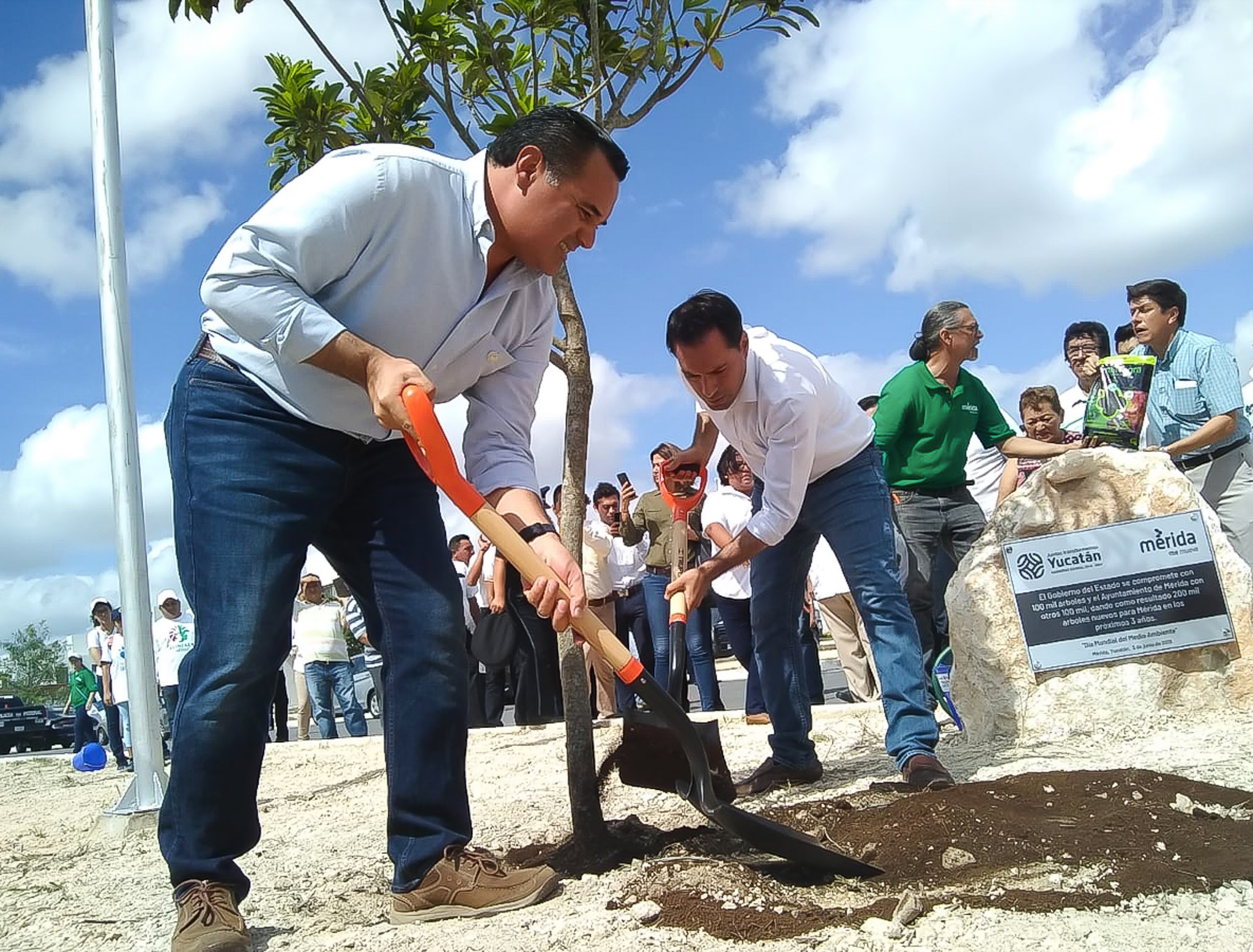 Como parte de los objetivos de la Declaración por Mérida 2050 y con motivo del Día Mundial del Medio Ambiente, el gobernador Mauricio Vila Dosal y el presidente municipal de Mérida, Renán Barrera Concha, dieron inicio a los trabajos de reforestación de la ciudad en la Glorieta de los Gansos, del fraccionamiento Los Héroes, sembrando los primeros 500 árboles de los 200 mil que constituyen la meta. En el lugar se donaron otros 300 árboles.