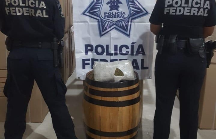 A primeras horas de la madrugada, en el aeropuerto Internacional de Mérida "Manuel Crescencio Rejón", elementos de la Policía Federal (PF) aseguraron un barril con 16 kilos de hierba verde y seca, con las características de la mariguana.
