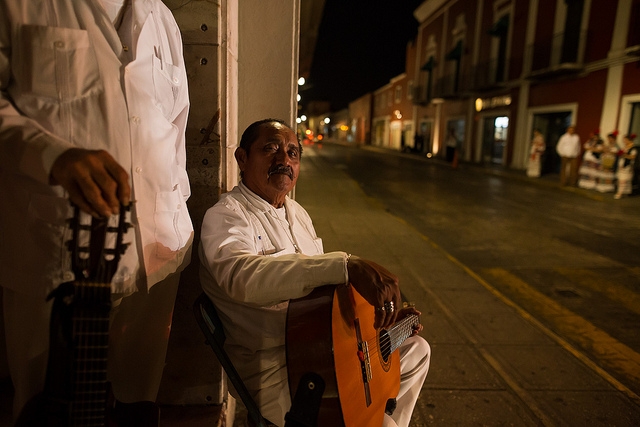 Los trovadores que ofrecen canciones en la Plaza Grande de Mérida realizan esta actividad desde hace más de sesenta años. En el pasado se buscó la manera “de que tengan seguridad social, pero bueno hasta ahora creo que no se ha hecho mucho”.
