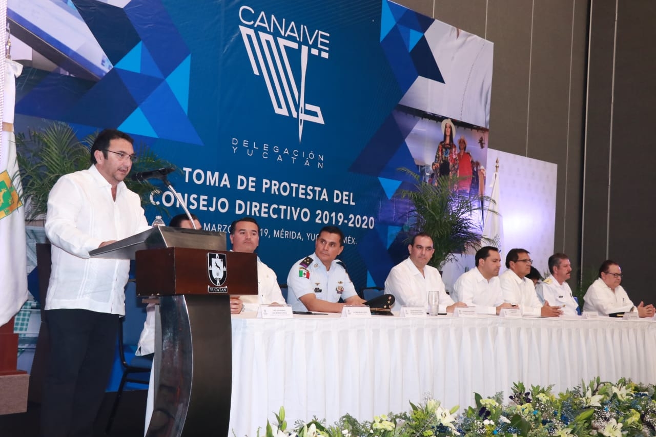 En presencia del gobernador Mauricio Vila Dosal, Muñoz Carrillo resaltó la labor del presidente saliente, Pedro Enrique Góngora Medina, que con su capacidad y esmero llevó a la Canaive, Delegación Yucatán, a ser referente en el estado, y que le inyectó su propio estilo para mantenerla activa.