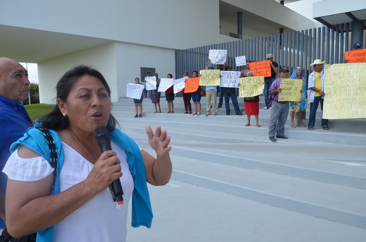 Un grupo de habitantes del municipio de Kantunil protestaron en el Congreso del Estado en contra de la presidente municipal con licencia y candidata a la secretaría general del Partido Revolucionario Institucional (PRI), Raymunda Che Pech, a quien acusan de tener secuestrado a ese ayuntamiento, pues a pesar de estar separada del cargo de manera temporal sus familiares mantienen una serie de abusos a habitantes de esa población que no están de acuerdo con su forma de gobernar.