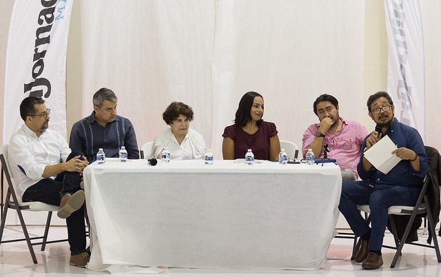 El conversatorio estuvo moderado por Francisco Hernández y Puente, investigador del Centro Peninsular en Humanidades y Ciencias Sociales (CEPCHIS) y editorialista de [i]La Jornada Maya[/i]; lo acompañaron las investigadoras Sara Gordon y Ana Cervera; también participaron Javier Becerril, Rubén Torres y Ricardo López Santillán.