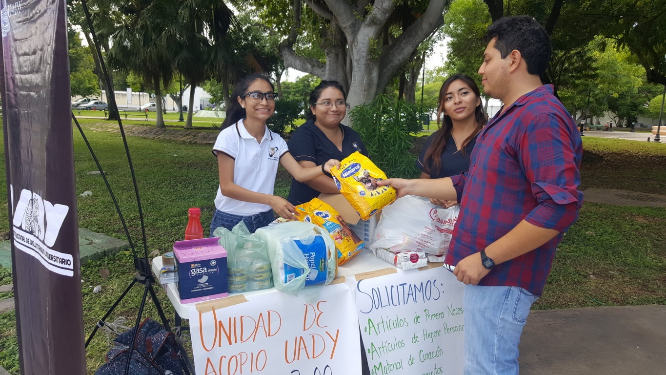 Por otra parte, como parte del Programa Integrador Responsabilidad Social Universitaria de la Universidad Autónoma de Yucatán (UADY) que busca desarrollar proyectos que favorezcan actitudes de liderazgo y responsabilidad social, el Programa Institucional del Voluntariado Universitario se suma a las acciones para apoyar a las víctimas de los sismos ocurridos el pasado 7 y 19 de septiembre con varios puntos de acopio en el parque de la paz y en la ex facultad de Ingeniería Química.