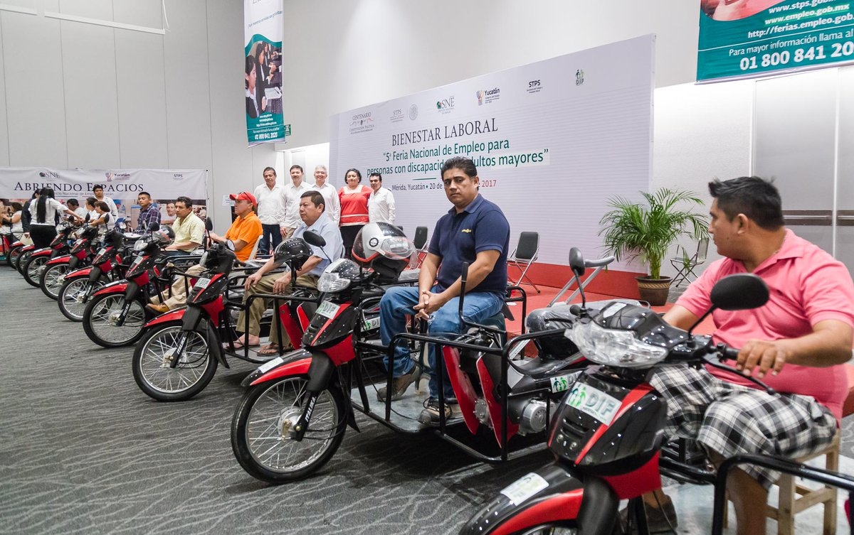 Durante la ceremonia inaugural, los funcionarios hicieron entrega de 10 motocicletas adaptadas para personas con discapacidad. Karina Amada Chan Poot, una de las beneficiarias de esta entrega, comentó que este vehículo le servirá para trasladarse a su trabajo.