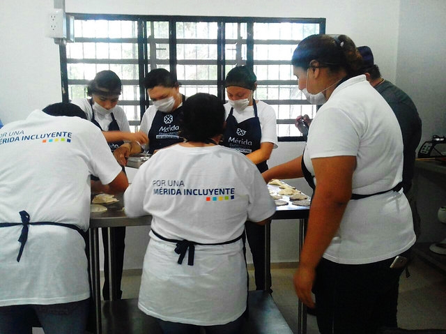 Lo que hace unos meses era una caballeriza, hoy es un espacio acondicionado donde los alumnos del Centro Recreativo La Ceiba toman el taller de cocina. La mayoría de ellos son personas con discapacidad intelectual y tienen entre 25 y 50 años. El lugar se inauguró este miércoles, y consta de un salón con utensilios de cocina, mesas, hornos y material para preparar polvorones, pasteles y pay de queso.