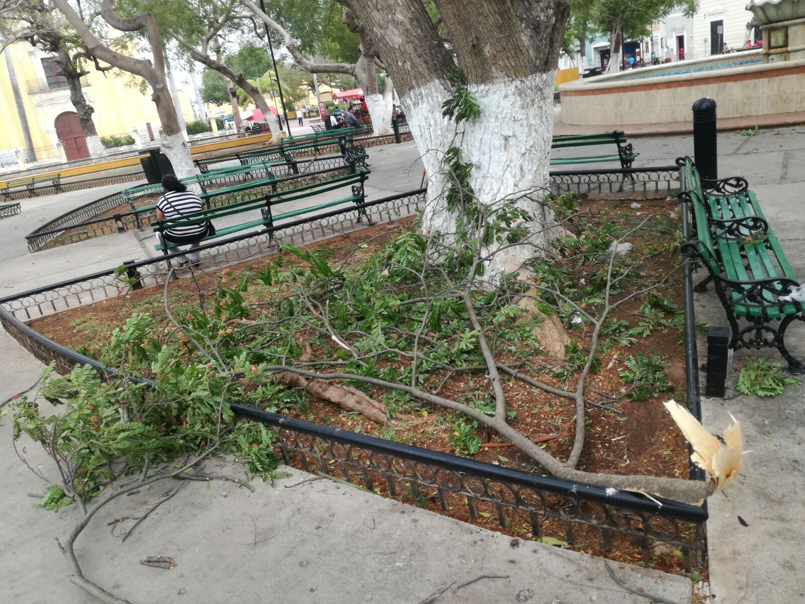 En Halachó hubo dos árboles caídos, mientras que en Progreso se registraron postes abatidos por el viento.