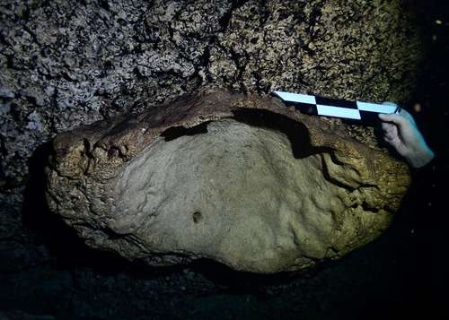 Durante la exploración subacuática del cenote, personal del Departamento de Manejo de Sistemas Kársticos reportó que el objeto encontrado pertenece a una colonia de coral pétreo masivo; mide aproximadamente 90 centímetros de diámetro y está a cuatro metros de profundidad, adosado al techo del área de entrada a una caverna, en la zona sur del cuerpo de agua.