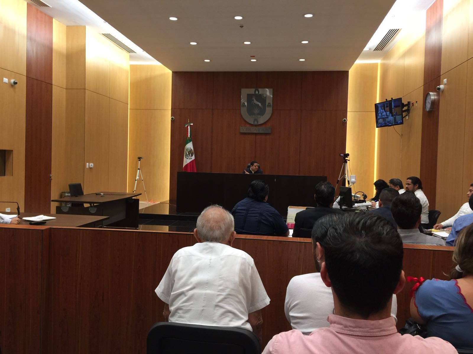 La audiencia fue citada en punto de las 13:00 horas en el Centro de Justicia Oral de Mérida (CEJOM), la cual tuvo como particularidad el uso de una teleconferencia entre el hoy imputado, que se encuentra preso en un penal de Tabasco, y los asistentes a la sala ocho del citado lugar.