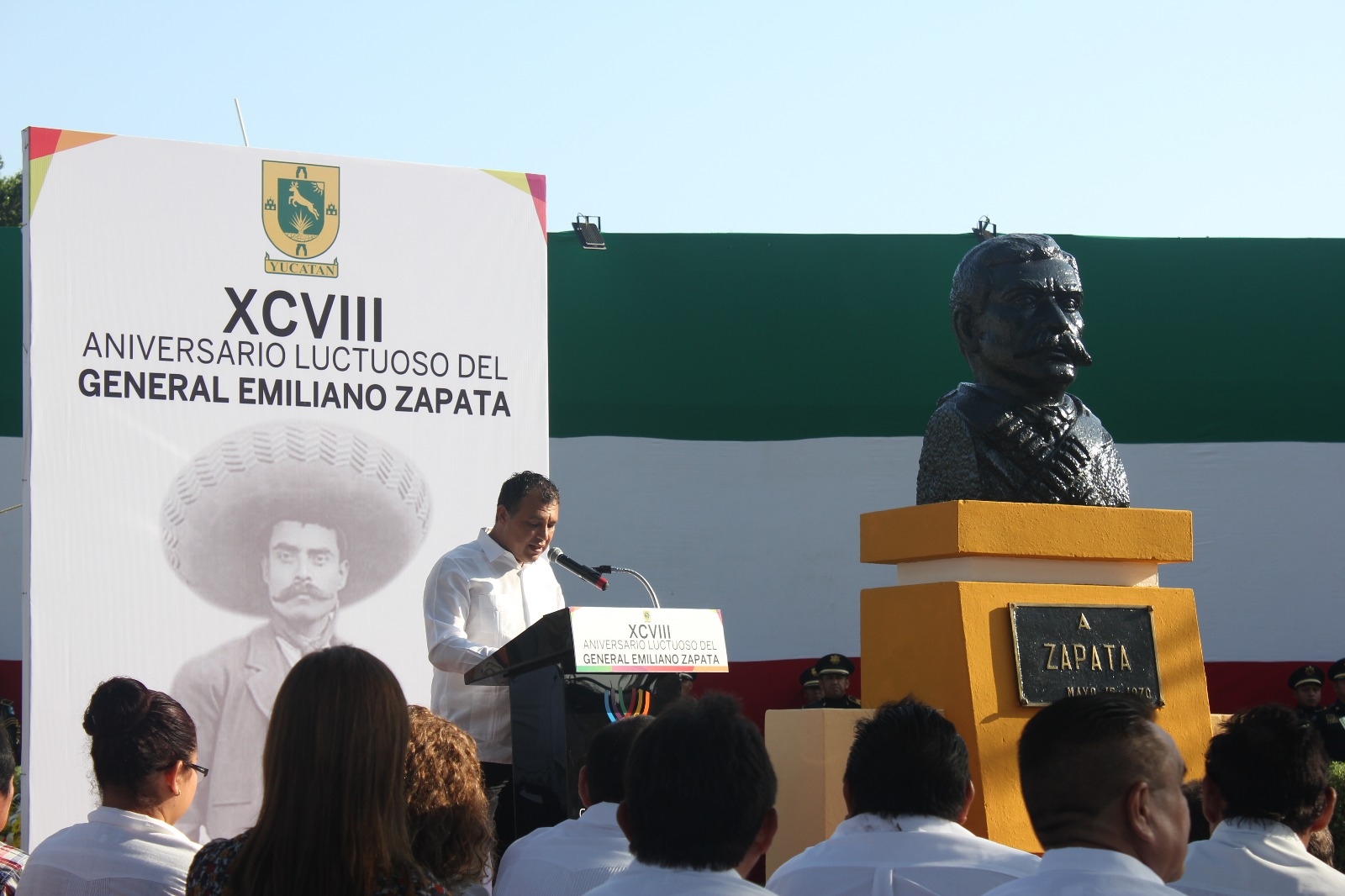 En la ceremonia, celebrada en el busto erigido en honor al General en la colonia Tanlum, el magistrado Santiago Altamirano Escalante pronunció una breve reseña del histórico personaje, ícono de la lucha campesina mexicana en los tiempos de la Revolución.