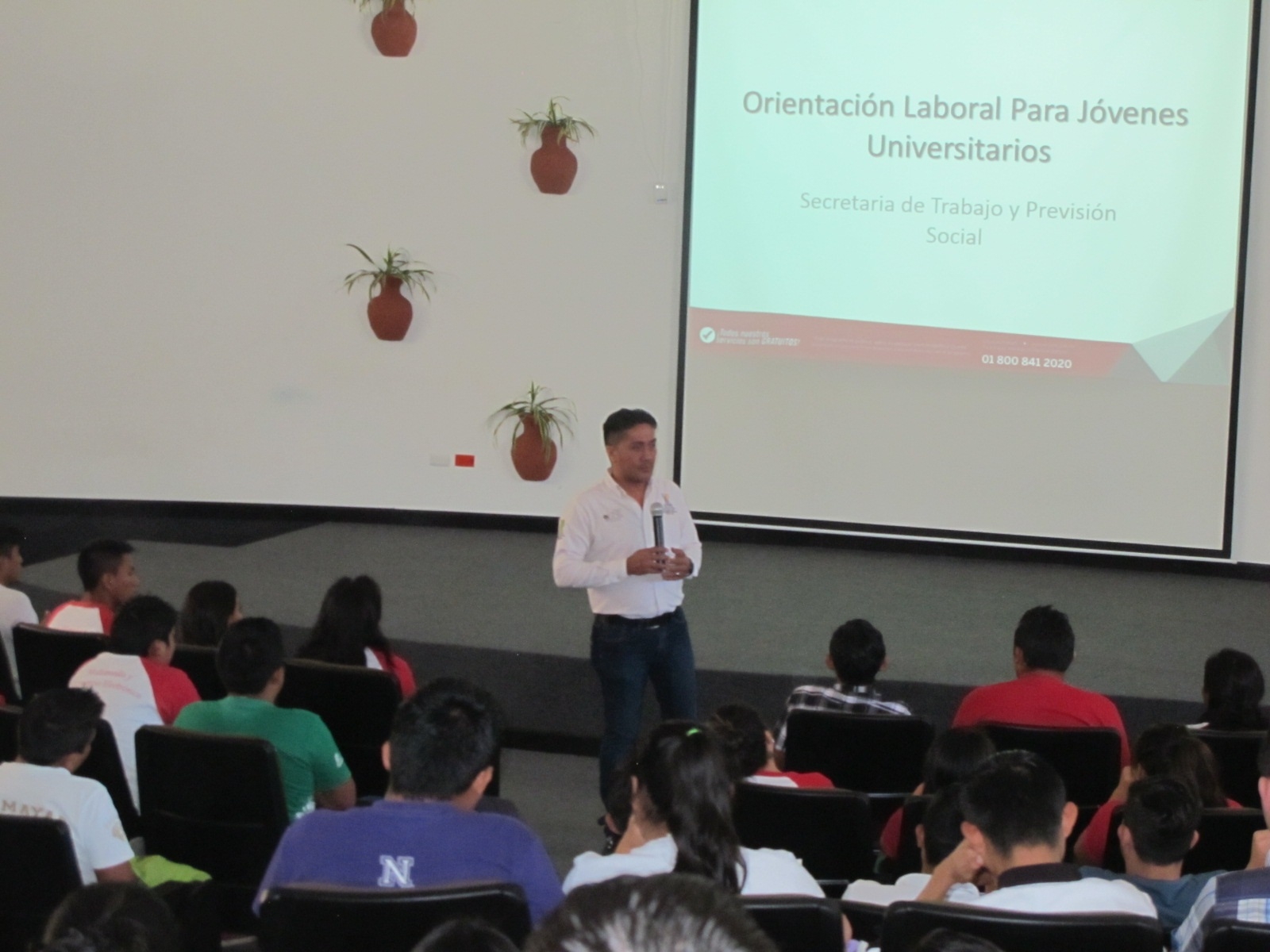 Estudiantes de la Universidad Tecnológica del Mayab de Peto recibieron este día información y tópicos para mejorar sus oportunidades de encontrar un puesto acorde con su perfil y expectativas, a través de un taller que les impartió personal de la Secretaría del Trabajo y Previsión Social (STPS) y del Servicio Nacional de Empleo Yucatán (SNEY).