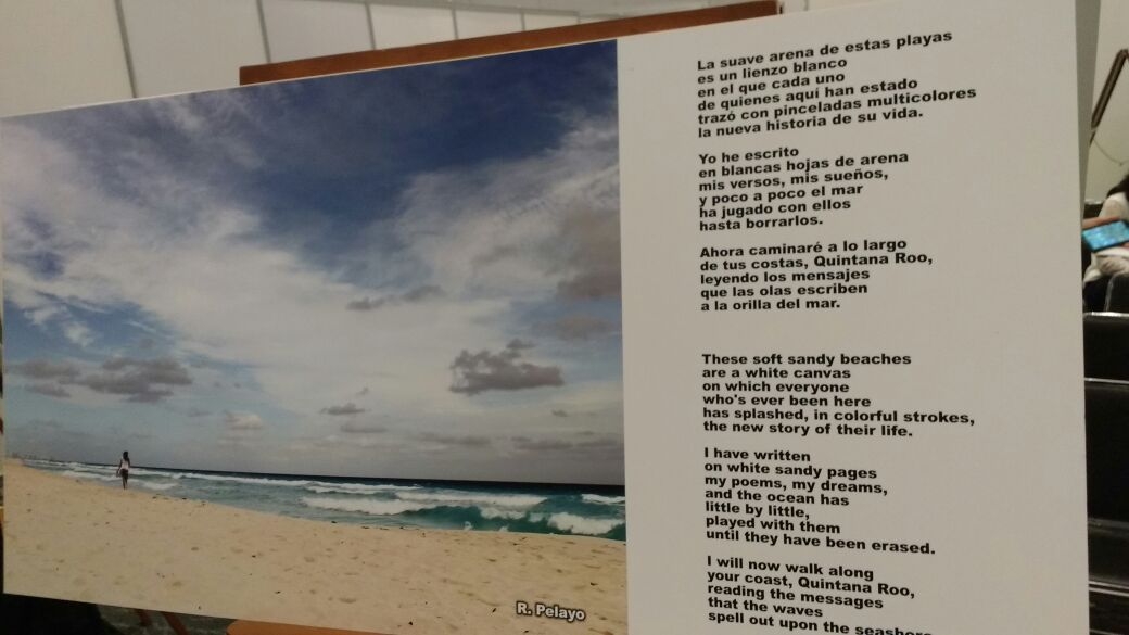 Sus poemas acompañaban los colores y la fuerza de las imágenes de Rubén Pelayo, que mostraban Flambloyanes, árboles de chicle, lluvias de oro, el mar de Quintana Roo, la arena en la playa, y los distintos matices de los colores del Mayab.