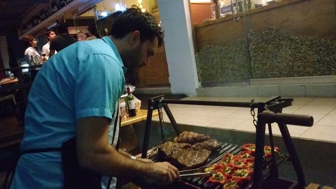 El aroma del carbón encendido abre el apetito a los miembros de La Logia de Taninos para Todos. En una parrilla, el bonaerense Fernando Rodríguez, propietario del restaurante Los Andes, se afana en preparar el asado argentino.
