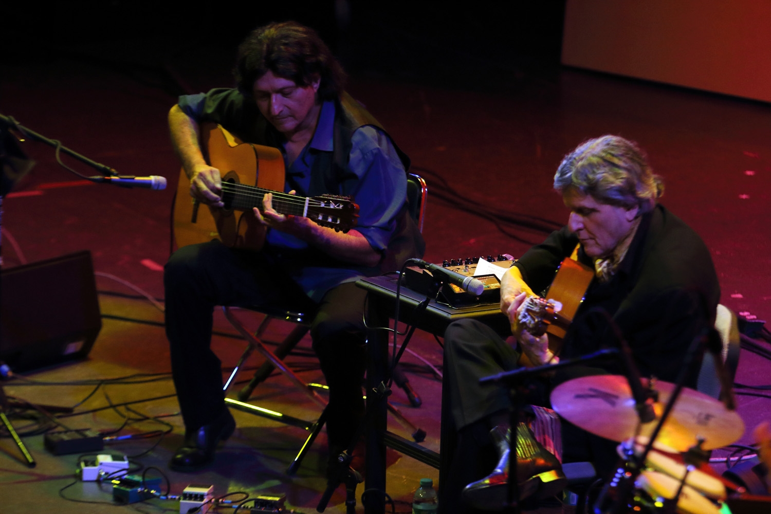 Jorge Strunz comentó que se sentía muy feliz de venir a Mérida a tocar por primera vez, y explicó que el siguiente tema sería una composición de su compañero y socio Ardeshir Farah, “se llama Tabus, él es iraní y la canción habla un poco de su país, [i]tabus [/i]significa el pavorreal”.