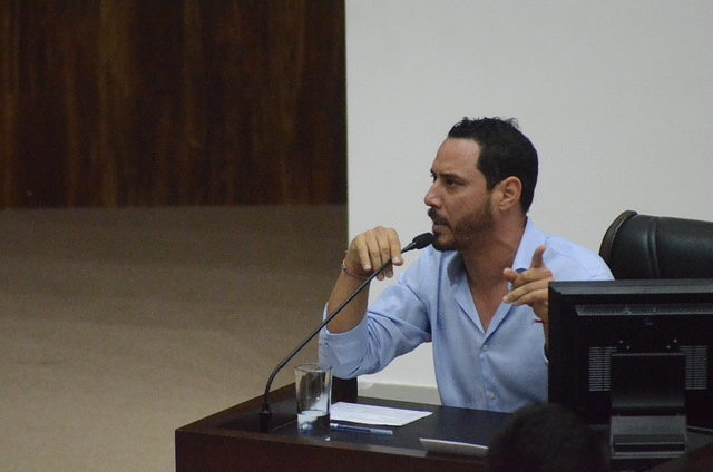 De nueva cuenta Paz Alonzo subió a tribuna para exhibir un audio desde su teléfono celular, donde se escuchaba la voz en una entrevista de Rivas Rodríguez, donde narraba el camino de la iniciativa que había presentado una semana atrás, lo que a decir del panista, evidenciaba el trato inequitativo.
