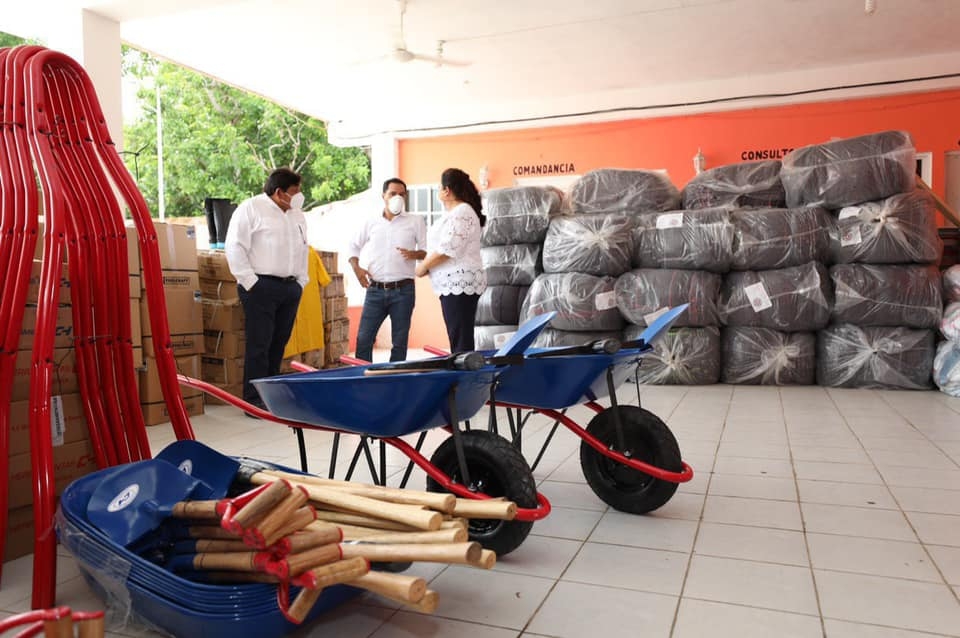 Además, Vila Dosal hizo entrega de 27 mil impermeables, 58 mil 424 costales, 27 mil pares de botas, mil palas, mil picos, mil carretillas y mil machetes para uso en las áreas de Protección Civil en las localidades donde se realizó la Declaratoria de Emergencia como parte de los apoyos gestionados ante el Fonden.
