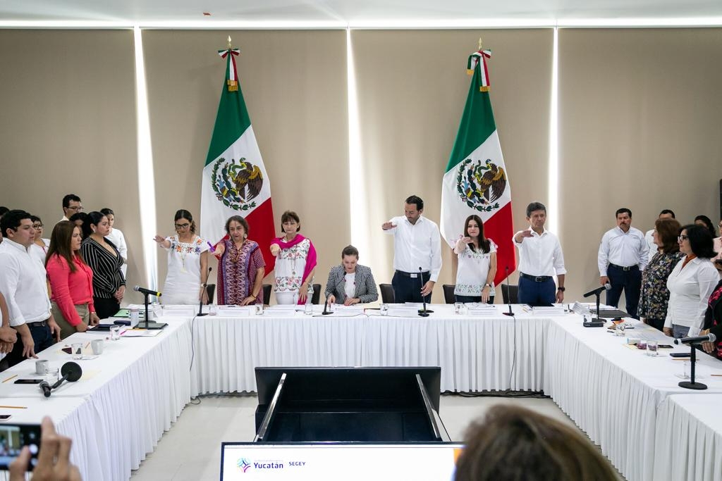 Los titulares de las secretarías de Educación, Salud, Cultura y de las Mujeres; Loreto Villanueva Trujillo, Mauricio Sauri Vivas, Erica Millet Corona, María Herrera Páramo, respectivamente; así como María Teresa Vázquez Baqueiro y Carlos Sáenz Castillo, directores de los institutos para la Inclusión y Personas con Discapacidad, y del Deporte, comparecieron durante seis horas ante la LXII Legislatura estatal, como parte de la glosa del primer informe de gobierno, en el Eje Desarrollo Humano, que se llevó a cabo este lunes en la Sala de Comisiones 'Abogada Antonia Jiménez Trava'.