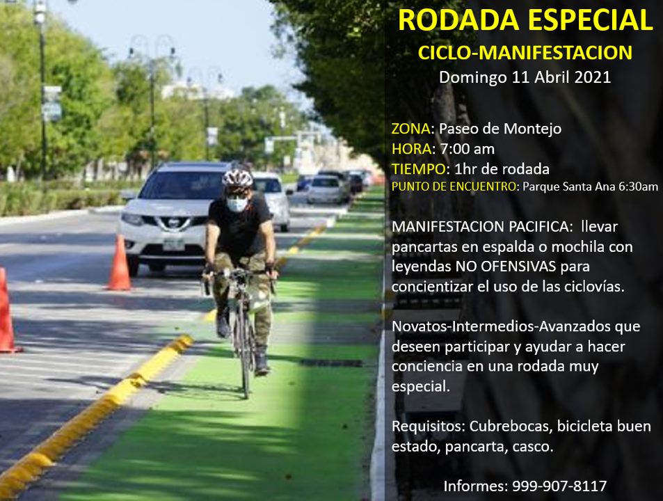Con el fin de concientizar a la ciudadanía sobre el correcto uso de la nueva infraestructura ciclista que se están construyendo en Mérida, ciclistas de Yucatán convocan a un ciclo manifestación el próximo domingo 11 de abril. Exigen seguridad en las ciclovías.