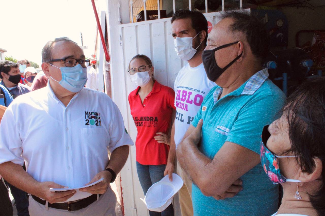 Acompañado de Pablo Gamboa Miner, candidato a diputado federal por el Distrito 3, y Alejandra Rivas Escalante, candidata a diputada local por el VII Distrito, Ramírez Marín visitó la tienda de abarrotes “Gaby”, de la colonia Zazil Há, al sur de Mérida, donde su propietaria, Rubí García, le comentó que durante la pandemia estuvo a punto de cerrar, debido a las bajas ventas y los altos recibos de luz.
