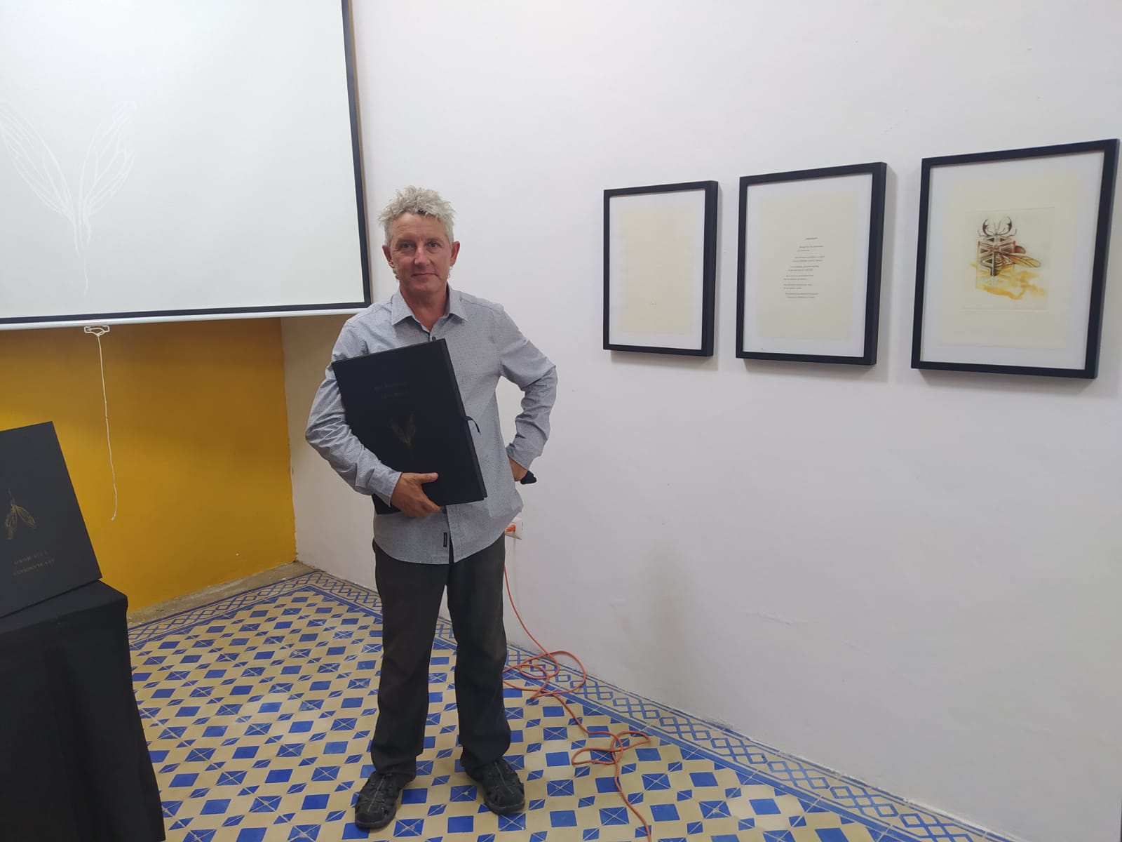 En Casa Lo’ol, un laboratorio de gráfica y diseño, fue presentado el trabajo que el artista hizo con poemas de la escritora Ana Blandiana, con quien ha tenido la oportunidad de colaborar antes.