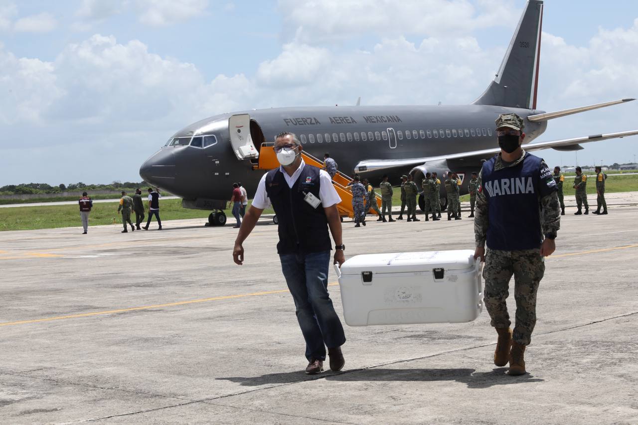 El subdirector de Salud Pública de la Secretaría de Salud del estado (SSY), Carlos Isaac Hernández Fuentes, acudió a la Base Aérea Militar (BAM) Número 8 para supervisar la llegada del nuevo lote de vacunas, abordo de la aeronave Boeing 737-200 de la Fuerza Aérea Mexicana matrícula 3520, proveniente de la Ciudad de México, que tocó territorio estatal a las 14:03 horas.
