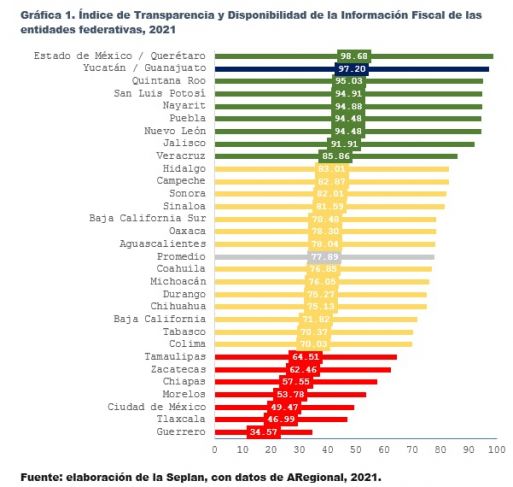 Yucatán obtuvo una calificación histórica en el Índice de Transparencia y Disponibilidad de la Información Fiscal de las Entidades Federativas (ITDIF) de la agencia consultora ARegional, al alcanzar 97.2 de un total de 100 puntos, la calificación más alta que el estado ha alcanzado desde que se tienen registros y uno de los puntajes más altos que han otorgado en dicho indicador.