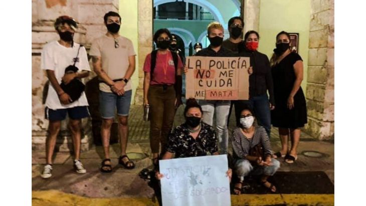 Al final, llegaron un grupo de personas que protestaron por esta muerte, con pancartas en las que decían: “La policía no me cuida, me mata” o “justicia para José Eduardo”, y prendieron algunas veladoras en frente del palacio de gobierno.