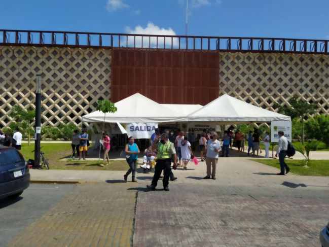 Pese a lo anterior, la gente mostró su inconformidad al tener que aguardar bajo los rayos del sol. Con sombrillas y botellas de agua purificada, los asistentes trataron de mitigar el calor que este día registró 33 grados centígrados en Mérida.