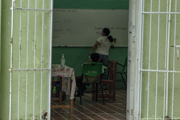 Lourdes Canto Gómez, directora en la escuela Nicolás Bravo, ubicada en el Barrio de Santiago, refiere que son 342 niñas, niños y adolescentes inscritos en su institución; sin embargo, únicamente alrededor de 70 regresaron de forma presencial.