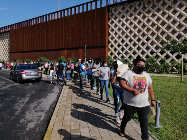 Desde temprana hora, personas de 18 a 29 de edad llegaron a los módulos de vacunación en Mérida para recibir la primera dosis del antígeno de AstraZeneca.