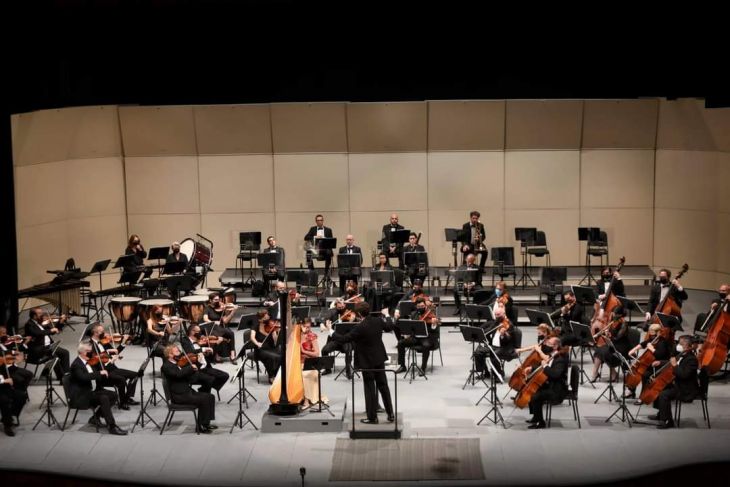 Bajo la batuta de Lomónaco, la velada musical se enriqueció con la participación de la arpista británica, Ruth Bennett, como solista invitada, quien también es parte de la OSY.