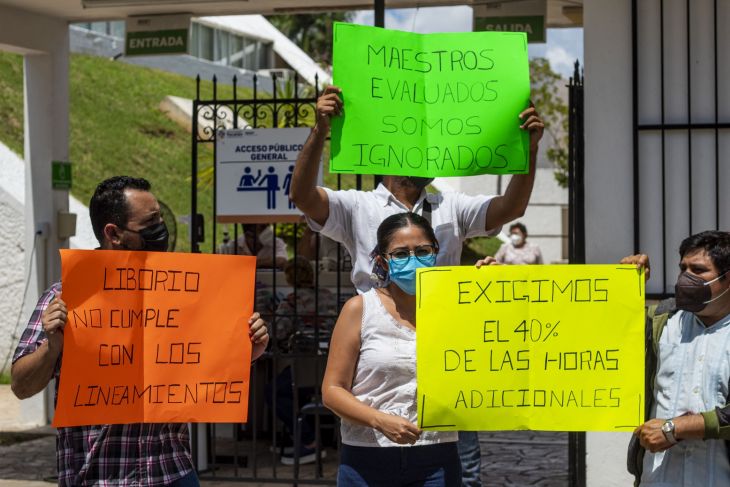En esta ocasión, para poder aspirar a un aumento en sus horas de trabajo, presentaron un examen, mismo que las y los manifestantes alegan haber aprobado con éxito con la puntuación requerida para sus aumentos, sin embargo, hasta la fecha no les están brindando más grupos.